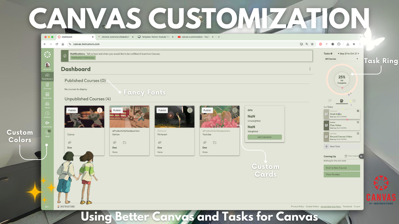 In my latest YouTube video, I’ll show you how to use two incredibly powerful tools — Better Canvas and Tasks for Canvas — to completely transform your Canvas dashboard into a more personalized and visually appealing environment. Whether you’re a fan of minimalism, fantasy, or something entirely unique, these tools will help you bring your vision to life.